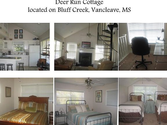 Furnished Ideal location for Boating, Kayaking and Fishing Fully furnished - perfect for couple or single individual. Located near Vancleave High School, approximately 3 miles north of I-10 on HWY 57. Elevated 1000 square foot cottage with 2 bedrooms, 1 bath and a loft that can be used as an office All electric home - central heat and air, fireplace, washer and dryer Parking is under cottage, 3 concrete floor covered bays are provided. Owner pays for trash/water