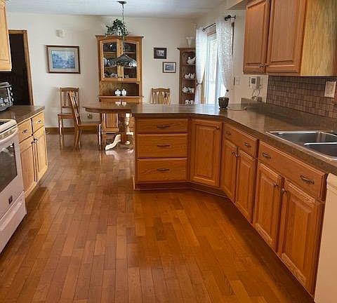 - Features: Counter Bar, Pantry, Walkout, Wood Cabinets, Wood Floor