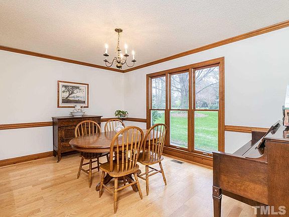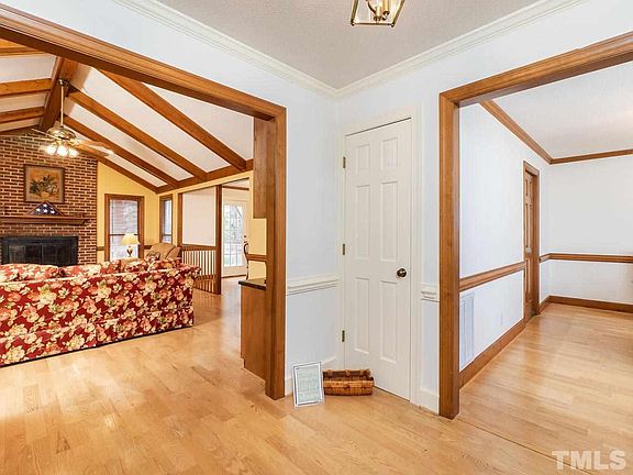 Charming 3 Bd 2 1/2 Bth RANCH in APEX located on Beautifully maintained .72 acres. FRESHLY PAINTED In&Out! NEW Carpet & ROOF! FR w/VAULTED Beamed Ceiling. Dining illuminated w/3 Lrg Windows & Swing Door adjoining Spacious Kitchen w/Granite, Wood Cabnts, Dbl Door Pantry & generous Nook overlooking Fantastic backyard! Kingsize Master w/French Doors to private Deck, Double Vanity w/Granite, Walkin Closet, Jacuzzi Tub & Walkin Shower. Bedrooms & Closets are Spacious. Extensive Molding. Low HOA Fees by Choice.