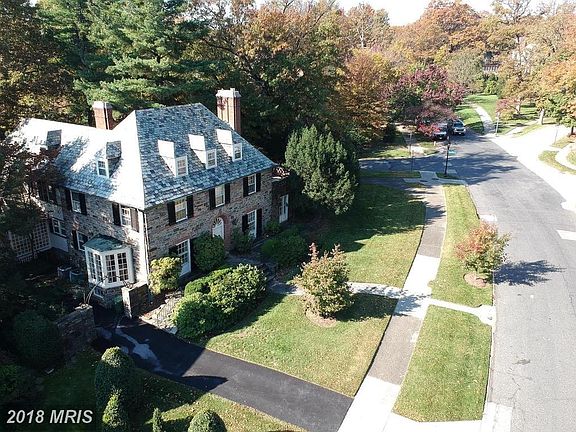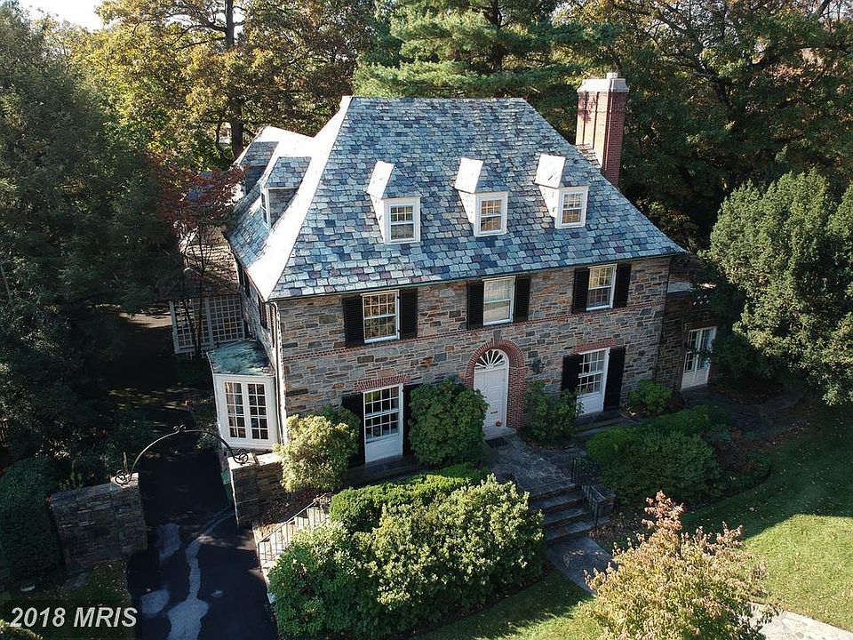Architecturally distinctive stone home on prestigious block. Winding 2 story staircase. High ceilings. Light-filled bay window alcove in DinRm. Renovated kit & fam rms. Awning covered 43' x 9' terrace from French drs in LivRm leads to beautiful stone walled garden, fountain & pond. Covered porch off kitchen. Flexible 2nd level floorplan w/ large study & balcony off master BR. 2 car att. garage