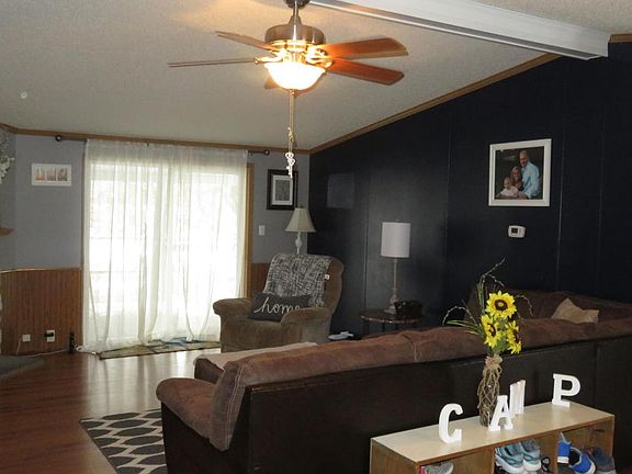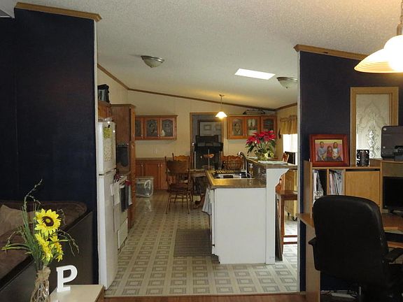 Beautiful, Well-maintained Three Bedroom two full bath home with a large two-stall garage. Including a bonus room that could be made in to an awesome man cave or extra storage! Inside you will see an open concept with vaulted ceilings. In the living room you can cuddle up to the gas fire place and look out to your private fenced in back yard that has a deck patio with fire pit! Master bedroom fit for a king and queen this room offers a large walk in closet and a big bathroom that offers a Jacuzzi tub and walk in shower. The kitchen is updated and very large, off of the kitchen is a large laundry room! This home has a lot to offer sitting on ONE Acre and all under $95k. This won't last long!