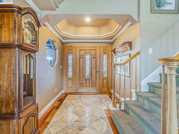 Welcome to this Fabulous Deep Water Custom South Eastern Exposure Home located on a point lot with partial views of Mt. Diablo. Remodeled kitchen, w/ granite counters, large SS sink, upgraded stainless appliances, designer backsplash, breakfast bar seating and eat-in kitchen w/ water views. Gorgeous real hard wood flooring w/travertine insets, soaring great room with coffered ceilings, crown molding in all other rooms, wet bar, large fireplace in great room, & new slider out to the nice sized deck, perfect for entertaining & relaxation, updated U-Dock, hydro hoist w/ newer dock canvas awning. The 2nd floor boasts 3 full bedrooms, PLUS the large Primary Suite w/soaking tub, separate shower with dual shower heads. A work from home office can be used off the Primary Suite or 4th Bedroom it’s such a rare amenity. Two side yards, one is perfect to store boat/trailer and the other is great for entertaining furnished w/ pavers and a great view. Find out how special it is to live on the water. Home has a whole new exterior paint job with section 1 complete..This home is super clean and move in ready. Sellers motivate bring us a offer!!