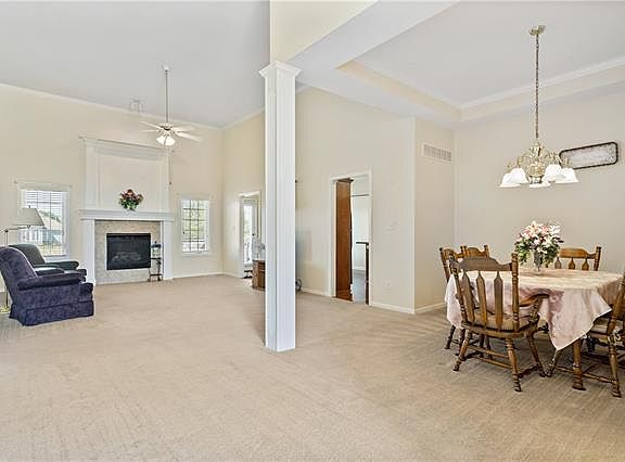 - Features: Carpet, Ceiling Fan(s), Fireplace