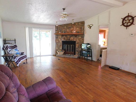 Comfortable 3 bedroom 2 bath split bedroom plan with WB fireplace in the spacious LR, dining room, nice kitchen, hardwood floors in LR, DR, & Hall. Covered decks front and back. Detached 24 x 24 2 car garage. situated on .83 acres on pavement.