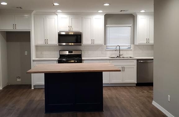 Property Id: 233324 Completely renovate Broken Arrow home. Everything is brand new! Great schools, just down the road from the creek. 3Bed, 1Bath, open concepts living room, beautiful kitchen, butcher block countertop on kitchen island with electrical plug in on island, recessed lighting throughout, large back patio, covered front patio, washer and dryer hookup, large two car garage with plenty of room for additional storage.