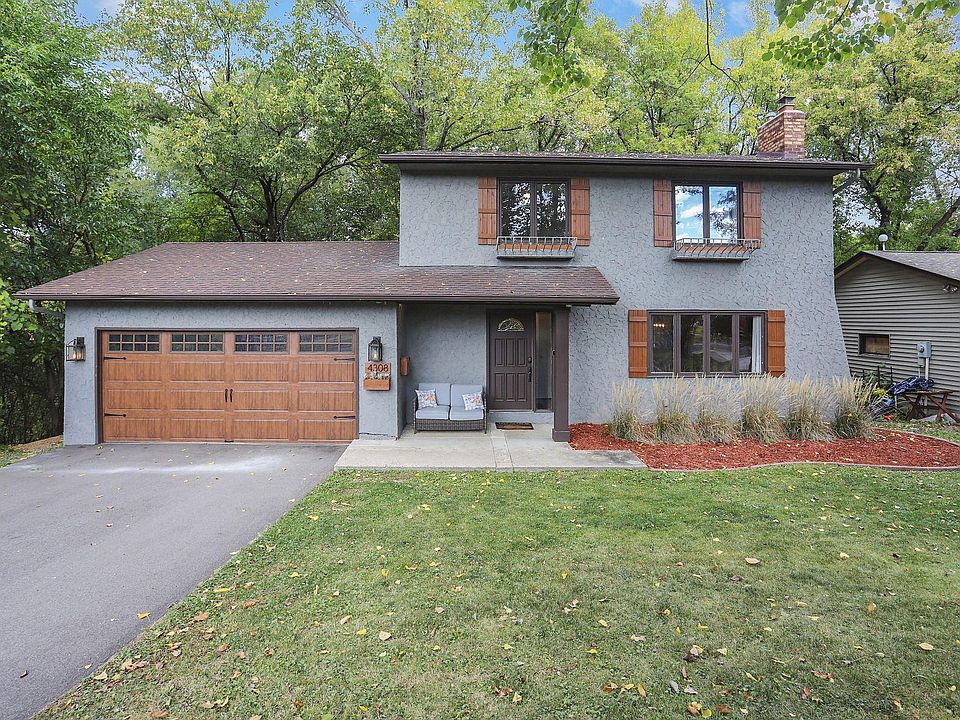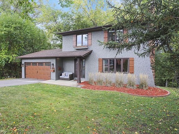 Enjoy an elegantly renovated home in the sought-after neighborhood of Fern Hill. Newly refinished deck with amazing views and privacy overlooking a serene wooded yard. Enjoy summer grilling on the deck or in the yard with cozy lights and a backyard fire. Updated eat-in kitchen with granite and stainless-steel appliances, featuring a double convection oven and French door refrigerator. Hardwood floors throughout main and upper level. Formal dining room and living room with wood burning fireplace on main level. Sought after 4 bedrooms all on upper level, perfect for children or guests. Master suite has walk in closet, wall closet and attached bath. Lower level walkout has been updated and is ready for your final finishes, has plumbing ready for a 4th bathroom and egress window if 5th bedroom or in- law suite is desired. Attached and insulated 2 car garage with entry into the kitchen, making Minnesota winters a breeze.