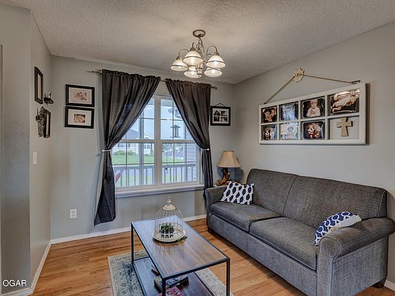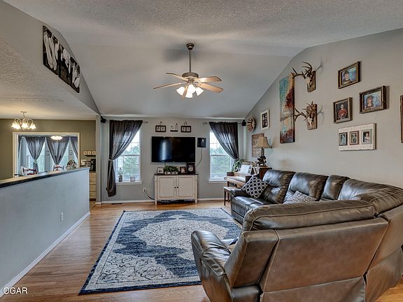 Open floor plan, with loads of natural light. Hardwood floors throughout, split bedroom plan with a sunroom off of kitchen. Master bath with jetted tub and walk-in shower, double sinks, tile floors, corner lot with fenced backyard and underground storm shelter access through garage.