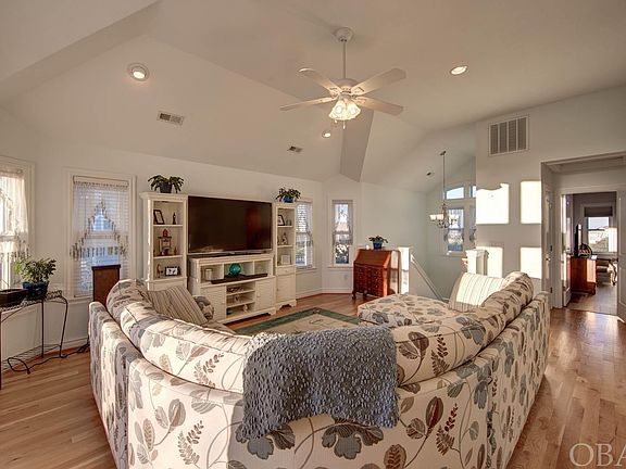 Looking for a well-maintained home that lacks the wear and tear of a vacation house? Well, look no further! This home has been lovingly cared for as a primary home since it was completed in 2015. The house is situated on an elevated lot providing peace of mind and a nice ocean view from the top floor. Two of the four bedrooms are masters, and each has access to the covered decks. You'll love the natural light and high ceilings on the top floor that create a bright and spacious atmosphere. The two storage rooms on the ground level are much appreciated, and the backyard fire pit and fenced-in yard (both sides only) are perfect for entertaining. There is an irrigation system installed for easy lawn maintenance. (Irrigation system is not currently in use) Located in the friendly waterfront community of Old Nags Head Cove, you'll have access to the sound-front clubhouse, pool, boat ramp, volleyball court and more. Updates include LVP flooring in bedrooms (2020), Washer & Dryer (2020), HVAC unit (2021), blower in the 2nd HVAC unit (2021), and Water Heater (2022). Don't miss out on this excellent opportunity!