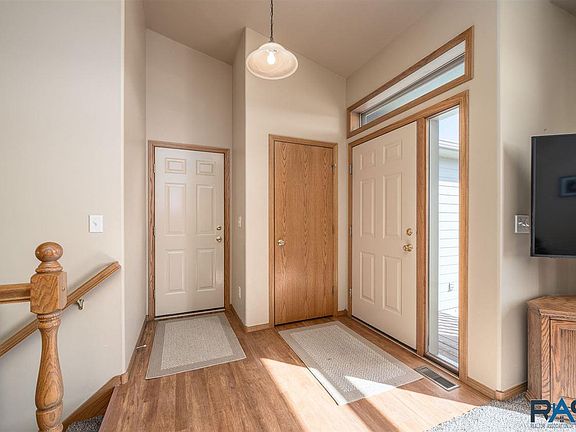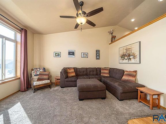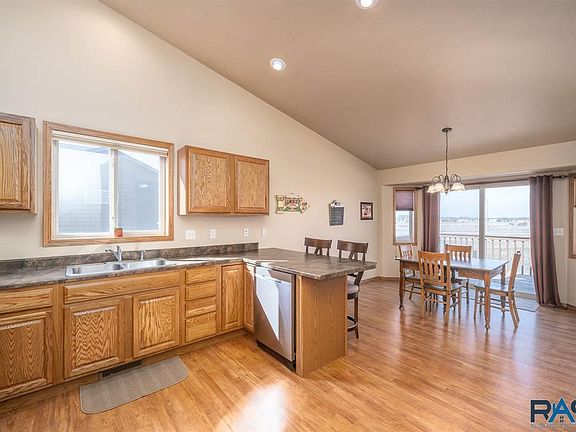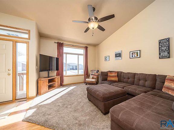 Spacious Ranch Style Home w/ 4 beds and 2 full baths. The main floor is open and bright with vaulted ceilings and lots of natural light. Step into the welcoming foyer and living room with large front window. A spacious kitchen with peninsula, new this December SS appliances, and a large dining area with sliders to the backyard deck. Plus two bedrooms and a full bath. There is more to enjoy in the lower level Family Room with surround sound, wired for Cat 5, plus a Wet Bar! It comes with plenty of counter space for entertaining, wood flooring & a SS fridge. Lots of extra storage in the utility/laundry room. Enjoy the outdoors in this great yard including an underground sprinkler. This home has room for all of your needs and is conveniently located near I-29 & growing NW Sioux Falls.