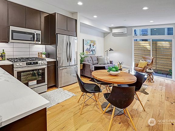 Five exquisite new townhomes from local builder Ecoworks Homes. Modern, classy and comfortable throughout. Main level features open living concept with Quartz counters, rich cabinet color, snazzy accent tile & gas range. Don't worry about those hot Summer days - Eco-friendly mini-splits produce the optimal temperature. Gorgeous flooring top to bottom. Escape to your multiple outdoor options - Private back patio, or a generous rooftop deck with city, lake and mountain views. A location with everything to offer. Situated at the epicenter of Wallingford, shops, restaurants, Gas Works and Burke-Gilman Trail are at your fingertips. Just mins to I-5 and 99 as well. Incredible value for the location!