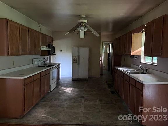 Large ranch home located in the beautiful mountains of Western North Carolina! This home sits on 5 acres of property that would be perfect for a mini farm! The home features three bedrooms and two full bathrooms. The living area in the home is open concept with the kitchen, dining and living area plus the bonus family room with a huge rock fireplace! The basement is walk out with concrete floors and a garage door. The back porch area is covered and the huge side porch is perfect for entertaining. This property is ready for your updates to make it your own!