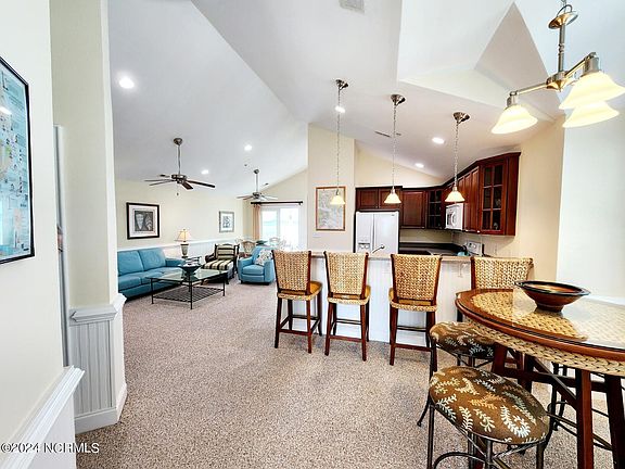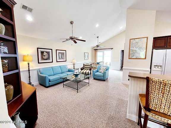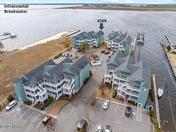 This meticulously maintained, low maintenance 2-bedroom, 2.5-bath sanctuary is turnkey. Cherry cabinets, vaulted ceilings, charming port hole windows, bead board accents, and fresh paint are just a few of the special features. The owner's suite is a haven of relaxation, featuring a cozy window seat with storage overlooking the water and French doors leading to the balcony. Indulge in spa-like luxury in the ensuite bath, complete with tile floors, a double vanity, and a rejuvenating jetted tub. The second ensuite bedroom has a private bath while the half bath is conveniently located in the hallway. Thoughtfully appointed with custom blinds and window treatments, every detail has been carefully curated for both style and functionality. A recently replaced HVAC installation ensures optimal comfort year-round. Beyond the confines of your private retreat, discover an array of amenities including a community pavilion for social gatherings and a sparkling swimming pool with convenient showers and bathrooms. With each of the four buildings equipped with its own elevator, accessibility is seamless. Plus, the proximity to downtown amenities such as restaurants, the library, and boutique shopping ensures convenience at your doorstep. Embrace the coastal lifestyle, embark on leisurely cruises down the ICW, located at your doorstep, or take a short drive to Outer Banks beaches. Welcome home to your waterfront paradise. No short term or long-term rentals permitted!