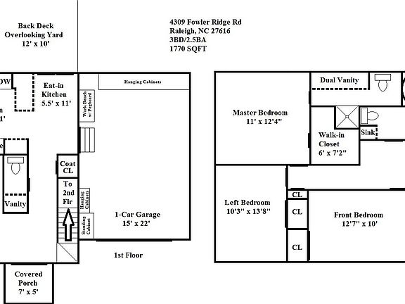Highly desirable location in the best and safest neighborhood just minutes from triangle town center mall, shopping, dining, and entertainment. The heart of Downtown Raleigh is just 15 minutes away and you're only 2-3 miles from access to 440 and 540. Flexible move-in between June 1st and the 15th given 1-year or longer lease, $2,150 deposit and first month's rent. $2,150/month rent does not include utilities, which have averaged $200/mo but rent does include access to the community pool, tennis courts, fishing pond, and playground. A maximum of 2 non-aggressive animals (cat(s) and/or dog(s)) will be allowed after paying a one-time $450 total nonrefundable fee. This immaculate luxury nonsmoking home is 4BR/2.5BA/1770 sqft and features bamboo wood floors throughout the first floor with tile in the kitchen and bathrooms, and newer carpet upstairs in the bedrooms and hall. It has an oversized 1-car garage with TONS of cabinet storage and a large pegboard tool organizer; a HUGE but low maintenance fenced backyard with a big deck; newer high-efficiency HVAC unit with Nest thermostats including integrated smoke/carbon monoxide detectors/alarms; high-end stainless-steel kitchen appliances including a very quiet dishwasher (only 45dB) and touch-control oven; and includes new high-efficiency washer and dryer on the 2nd floor. All of the bedrooms are big but only the master has a walk-in closet and its own bathroom with a dual vanity, garden tub, and separate shower. One of the best features is the stair-access attic space that provides another 780 sqft of storage space. Bedroom Sizes: Master: 11' x 12'4" Right Bedroom (Above Garage): 9' x 11'2" Front Bedroom: 12'7" x 10' Left Bedroom:10'3" x 13'8" Tours are being scheduled for May 24th so contact Marshall with any questions and to schedule a viewing of the property. Flexible move-in between June 1st and the 15th given 1-year or longer lease, $2,150 deposit and first month's rent. $2,150/month rent does not include utilities, which have averaged $200/mo but rent does include access to the community pool, tennis courts, fishing pond, and playground. A maximum of 2 non-aggressive animals (cat(s) and/or dog(s)) will be allowed after paying a one-time $450 total nonrefundable fee.