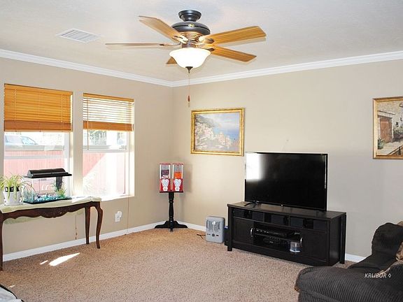 Pride in Ownership is how this home shows! Beautifully designed 2008 Custom Built Home, Featuring a Two-Car Attached Garage, Conservative Low-Maintenance Front Yard perfectly Landscaped with a Synthetic Lawn, 3 Bedrooms, 2 Baths, and room for the Family Pet! The open floor plan provides for a spacious Living Room, Kitchen and Dining Area, all finished with Crown Molding, Newer Light Fixtures and Baseboards. The Living Room has 3 Large Picture Windows letting in lots of Natural Light, and great for entertaining guests. In the Kitchen you will find Tile Flooring, Tiled Breakfast Bar, Recessed Lighting and Real-Wood Raised Panel Cabinetry. Off the kitchen is the Dining area, complete with a sliding glass door to the Covered Patio and back yard. Not only is this Turn Key Home it is perfectly located in a kid friendly neighborhood, Shopping, Schools, and has Close Access to Isabella Lake. Don't let this one pass you by!