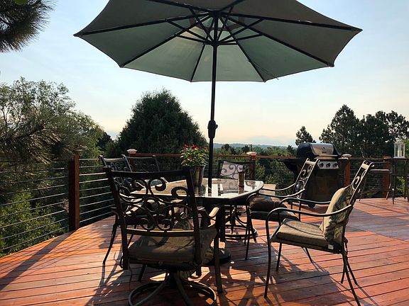 Custom built, classic Colorado home with 180 degree city views for miles. Newly remodeled, open floor plan, with a brand new 900 sq ft redwood deck. Nestled on a hillside half acre lot, with multiple relaxing spaces, including a large custom raised bed garden, surrounding a courtyard and chimnea fireplace. You won't want to leave! Enjoy beautiful landscaping, featuring mature ponderosa pines, large scrub oaks and even an aspen grove, with recent 2018 improvements including front porch, staircase and back deck.