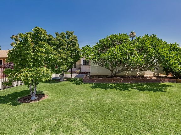 THIS HOME IS DECORATED WITH SIMPLICITY AND STYLE IN MIND. INVITING FRONT YARD WITH A âEURœHUGEâEUR PLUMERIA, WROUGHT IRON FENCE WITH GATES AND LUSH LANDSCAPING. DUAL PANE WINDOWS THROUGHOUT THE HOME WITH CENTRAL AIR AND HEAT. UPDATED BATHROOMS WITH NEW VANITIES, SINKS AND FIXTURES. BEAUTIFUL LAMINATE FLOORING IN ENTRY, HALLWAYS AND BEDROOMS (ORIGINAL HARDWOOD FLOORS UNDER EXISTING FLOORING). LARGE LIVING ROOM OPEN TO DINING AREA AND KITCHEN. LOTS AND LOTS OF WINDOWS AND FRENCH DOORS PROVIDING THE HOME WITH TRUE NATURAL LIGHTING. STAINED-GLASS GARAGE DOOR PANELS. REAR YARD HAS LOTS OF FRUIT TREES INCLUDING AN APPLE, FIG, LEMON AND A MATURE NAVEL ORANGE TREE. THE ORANGES PRODUCED FROM THIS TREE ARE DELICIOUS!!! RELAXING BACKYARD COMPLETELY SURROUNDED WITH BLOCK WALLS AND PLANTERS, TWO PATIOS AND BEAUTIFULLY LANDSCAPED. PERFECT FOR FAMILY GATHERINGS OR JUST SOME QUIET TIME FOR YOU TO RELAX AND ENJOY. DON'T FORGET TO CHECK OUT THE VIDEO.