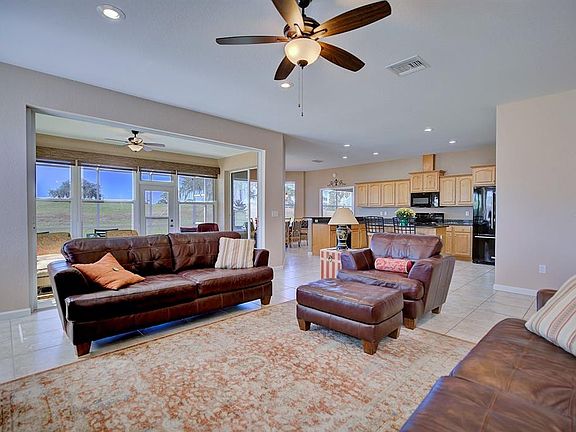 BEAUTIFUL GOLF COURSE home located on the North Golf Course in the highly sought-after community of Highlands Ridge, an active 55+ gated golfing community with numerous amenities, is a vibrant, resort-style destination for adults seeking a low-maintenance and socially engaging lifestyle. This warm home is a very spacious, open floor plan with 10 foot ceilings, tile and engineered wood flooring, 3 Bedrooms, 2 Bathrooms, an Office/Den, Family Room/Sun Room plus 2 Screened Porches (Front & Rear) overlooking the golf course. Enlarge the living area by opening the sliding glass doors between the Living Room and Family Room/Sun Room. Your large Kitchen is open to the Dining Room and Living Room making entertaining an enjoyable experience. Kitchen features are 2 pantries, granite counters, plenty of light wood cabinets, center island, breakfast bar and black appliances. The Master Suite has 2 walk-in closets, walk-in shower with grab bars, dual sink vanity and private water closet. Laundry Room is inside with plenty of cabinets and shelves and Washer/Dryer included. Oversized 2 Car Garage with Cabinet storage. Two Screened Porches (Front & Rear) to enjoy your coffee or cocktails. Curb appeal galore with the beautifully manicured lawn & landscape, landscape curbing. Bonus perks include the whole house generator, well irrigation, 2021 roof, impact resistant windows and sun blocking shades in the Sun Room. The community amenities include 2 golf courses, 2 pools, clubhouse, restaurant, tennis & pickleball courts, fitness room, library, boat ramp and dock, storage areas for RV's and boats and many more activities to enjoy! Come be a part of this very friendly community with an abundance of nature, you will see deer and turkey daily! Come take a look at this home today !