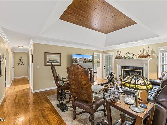 Step inside and be greeted by stunning hardwood floors, a cozy gas fireplace, and a tray ceiling that adds a touch of elegance to the living area. From here, you'll find your way to the covered, screened-in porch—a perfect spot for morning coffee or relaxing evenings. Want more space to entertain? Step out onto the large deck, it overlooks the backyard and peaceful treeline.