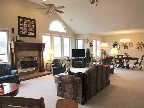 Here's a versatile patio home in Stonehenge with 1600 SF on the main floor and 1200 SF in the walkout lower level, allowing for separate spaces for guests, office, or hobbies. This gently-used 3-BR, 3-BA home offers vaulted ceilings and a dramatic view of the pond and woods from the main floor or the lower level patio. Large walk-in closets and unfinished areas of the basement provide plenty of storage space. The main floor has framing for an exterior door (behind bookcase) so that a deck could be added as has been done in the adjoining unit, and there is wiring in place for a hot tub on the patio, roof new in 2016. HOA dues of $140/mo provide mowing/fertilizing, snow removal, trash pickup, maintenance of exterior trim, and access to the pool, clubhouse, and fishing pier.