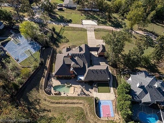 Live & play in this custom, luxury, unique & gated, one of a kind home! Nestled in trees/hillside in the center of Ft Smith! Located just minutes from the Airport, restaurants, and shopping centers. Outside paradise features a beach entry Caribbean pool w/hot tub, Cabaña Bar, outdoor kitchen, custom basketball court & 4 hole putting green! This 5 bdr, 4.5 ba home w/3 car gar/carport along w/added parking outside the gate is detailed & spacious. Chefs kitchen w/Thor appliances, 2 dishwashers, spacious laundry/hobby room, master w/soaker tub, rotunda office, upstairs LR w/kitchenette & more! Pictures were taken at an earlier time; a few things are different. Furniture to be included with the sale of the home.