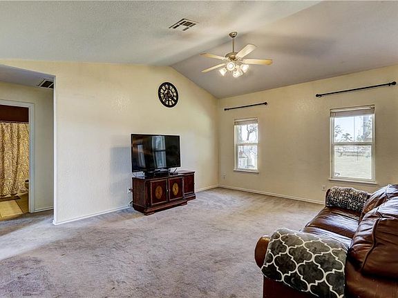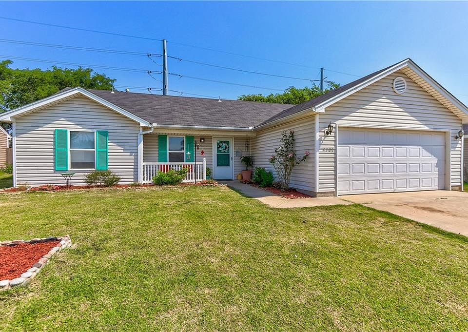 The well-manicured yard and inviting front porch welcome you into this light and bright 3 bedroom, 2 full bath home with study in Cedar Ridge Traditions. Lots of curb appeal! Oklahoma City address, Moore schools. Close proximity to Tinker AFB, shopping, dining, and I-240. Living flows into the dining, featuring a large window overlooking the backyard. The kitchen has a pantry and built-in microwave, with a pass-through window to the living area. Large master bedroom with walk-in closet. Large back yard with open patio, fruit tree and outbuilding for storage. New blinds in the bedrooms. HVAC only 1 year old. 2 car garage with in-ground storm shelter. Buyer to verify all information