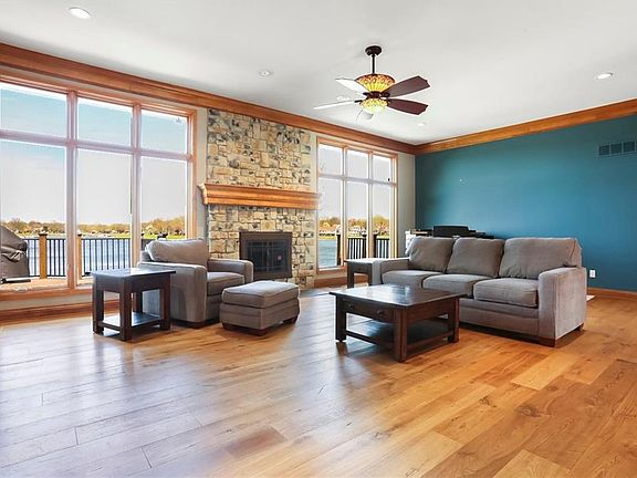 Ready to embrace the ultimate lakeside lifestyle? This expansive home, with over 180 feet of stunning shoreline, is perfect for summer fun and year-round relaxation! The great room features a wall of windows that frame the breathtaking lake view and seamlessly flows into the oversized, custom patio with a firepit. The large deck, extending from the kitchen to the primary suite, offers multiple access points for outdoor living.