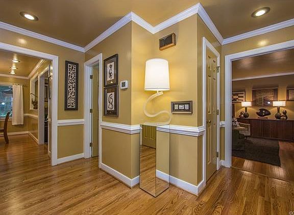 - Interior: Built In Cabinet/Bookcases, French Doors, Dining Area, Dryer Hookup, Washer Hookup, Bay/Bow Window, Eat-In-Kitchen, Recessed Lighting, Beamed Ceiling, Tray Ceiling, Countertops - Granite/Stone