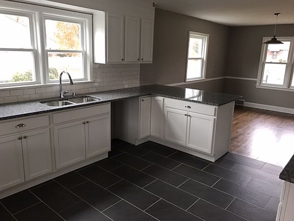 Beautifully updated 3 bedroom, 1 1/2 bathroom ranch home is ready for you to move right in. Modern open floor plan with gleaming, recently refinished hardwood floors and cozy fireplace. Brand new slate gray tile floors, cabinets, granite countertops are present in the newly renovated kitchen. New Samsung appliance package (including backordered side-by-side refrigerator arriving in January). New tile shower surround, shiplap accents, vanities and commodes. Partially finished basement has tons of space for entertaining and unfinished workshop area with additional storage. Fresh paint throughout and new carpet in basement and ceramic tile in laundry as well. Covered back porch looks out to a patio, good-sized fenced in back yard with 2 car garage and separate storage shed. Schedule today!