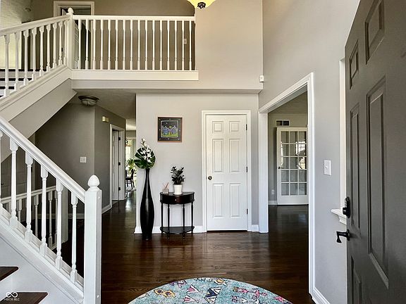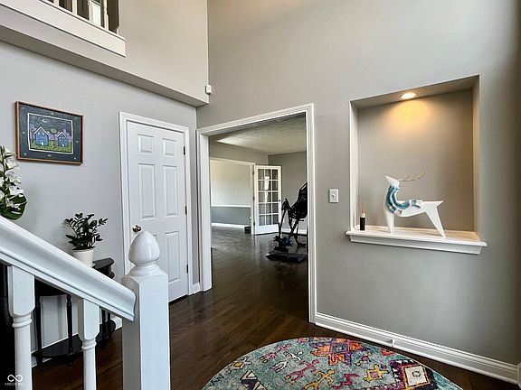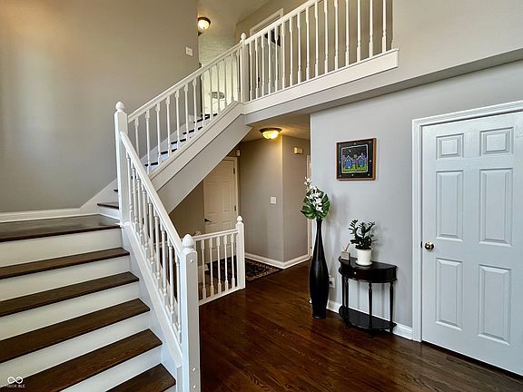 Nestled in a peaceful cul-de-sac, this stunning two-story single-family home boasts a spacious and inviting layout perfect for modern living. As you enter through the high entrance, you're welcomed by a breathtaking two-story great room featuring large windows that flood the space with natural light, and a cozy fireplace that adds warmth and charm. The gourmet kitchen is a chef's dream, equipped with updated stainless steel appliances, sleek countertops, and ample cabinetry. Hardwood floors grace the main level, stairs, and upstairs hallways, providing elegance and continuity throughout. The home offers four generously sized bedrooms and two and a half baths, all meticulously maintained and updated. Recent updates include water heater (2024), HVAC (2024), newer roof, water softener, sump pump, carpets, lighting fixtures and paint, ensuring peace of mind and a move-in-ready experience. The finished basement offers versatile space for recreation or additional living quarters. It is an entertainer's paradise, featuring a movie theater, a wet bar, and even a foosball table - perfect for hosting game nights or cozy movie marathons. The large, fully fenced backyard is equally inviting, complete with a spacious deck ideal for outdoor gatherings and a play set for endless family fun. Located in the highly sought-after Carmel area, this home offers easy access to highways, shopping, and is part of the top-rated Carmel Clay Schools. Don't miss this opportunity to own a beautiful, move-in-ready home in a prime location!