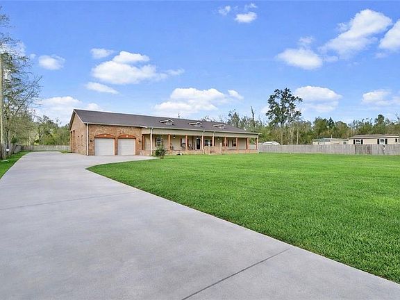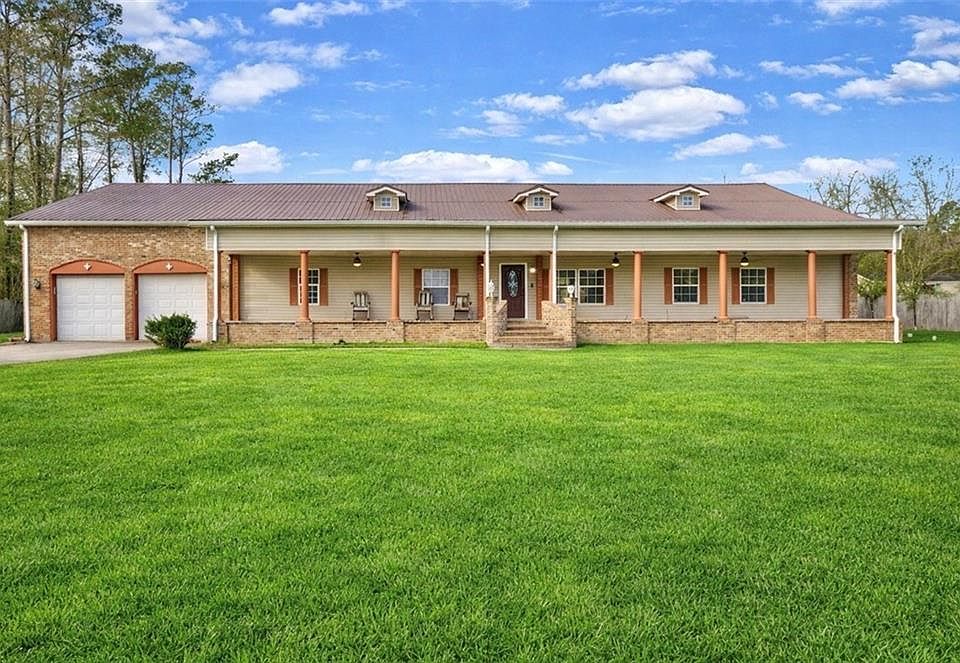 Welcome to this beautifully maintained home offering space, comfort, and freedom. Located in Flood Zone X and just minutes from interstates and shopping, this property offers convenience and peace of mind. With no HOA, you'll enjoy privacy and flexibility. Situated on 1.44 acres, this property delivers blend of country living with modern updates. Inside, you’ll find an open kitchen with granite countertops, and durable vinyl flooring, creating a clean, low-maintenance living environment. The home features a metal roof for long-term durability and a 1-year-old AC system, providing peace of mind and energy efficiency. A standout feature is the expansive entertainment room spanning over 1,900 square feet, complete with its own separate entrance— for hosting, for a game room, home business, multi-generational living, or potential rental use. Enjoy the inviting full-length covered front porch, for relaxing and taking in the open surroundings. With ample outdoor space, privacy, and flexibility, this home is for those seeking room to spread out without restrictions. This is a rare opportunity to own a versatile, move-in-ready property with acreage, modern upgrades, and endless possibilities.