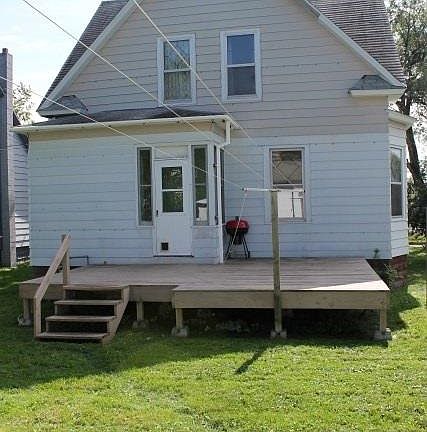 Very large home with nice spacious rooms! Formal dining room with nice pass-thru window to kitchen, hardwood floors and good transition into the Living room area. Inviting front entryway with nice woodwork stairwell going up! Three bedrooms up with a full updated bathroom. Basement is partially finished, floor is built up and leveled for a finished rec room area. Corner lot with detached two car garage, back deck, covered front porch and nice apple trees and lots of space!!