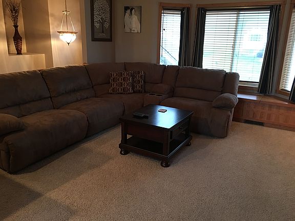 Fabulous opportunity!! 2000 Bi-level split home with 4 bedrooms and 2 baths featuring an open floor plan with vaulted ceilings and large foyer. Looks like a new home with updated kitchen flooring, fresh paint, new carpet throughout, newer refrigerator, new stove and 2020 roof. Free standing gas fireplace in the family room for added cozy feel and you can walk out to the open backyard. Relax and enjoy the firepit, bring on the s'mores. An apple tree and 2 maple trees enhance the landscape. Bonus! Finished triple attached heated garage with kitchen area for entertaining and much more! Yard shed for the toys and lawn necessities. Pet kennel included. A quick closing is available. This won't last long.