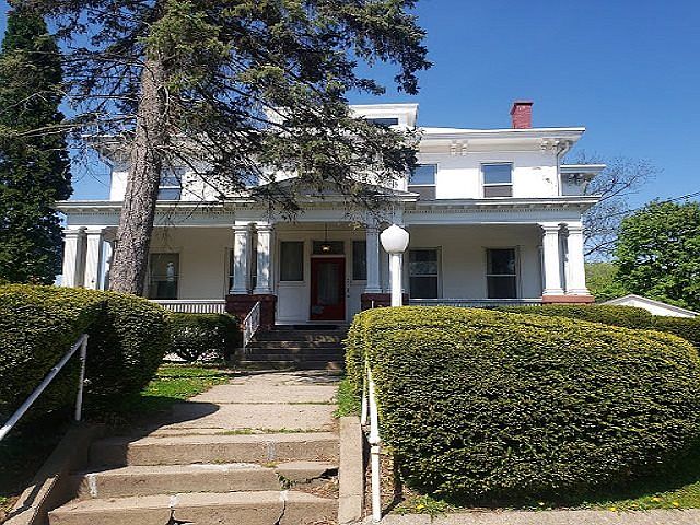 Built in 1850, this magnificent brick home in Historic District sits on a spacious yard with a 2-car detached garage and offers a main floor with 3 BR and 2 BA, 2 fireplaces (one working), cedar-lined closets, formal dining room and a den/office. The spacious, sunny family room has a beautiful window seat and built-in book shelves. The upper level has 4 BR, a full bath, and 2 half baths along with two additional rooms for office space, game area and more! A front and rear stairway allow full access to the home with ease. The attic and basement have an immense amount of storage and gorgeous built-in cabinets. This home has lots of memories from far away times but needs work to restore it's glory and renovation back into a stately single family home.