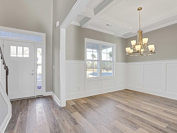 This move-in ready Live Oak welcomes you into a bright 2 story foyer. The open 1st floor includes a spacious living room with cozy gas log FP, formal DR with coffered ceiling & wainscoting, plus a spacious kitchen with center island, granite counters, SS appl's, huge pantry, large built-in desk, storage closet, and adjoining breakfast room. Upstairs you'll find the delightful master suite with trey ceiling, 2 large walk-in closets, roomy tiled shower, & dual vanity. 3 additional bedrooms, 2 with WIC's, and full laundry room with cabinets complete the upstairs. Add'l features include covered front & rear porches, patio, mudroom, powder room, luxury vinyl plank flooring, carpet, ceramic tile, ext. stone accents, sodded front & Side yards & more. Builder & Preferred Lender Incentives Offered.