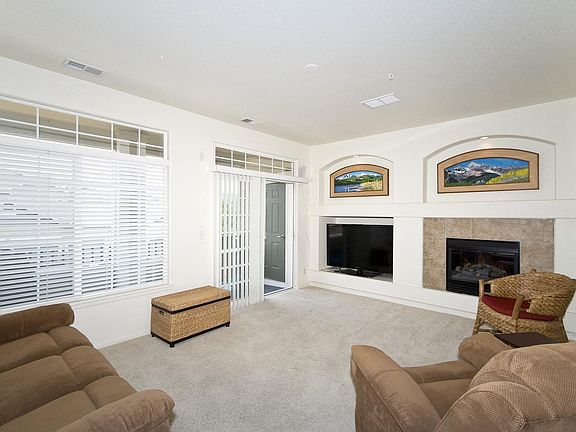 Second floor unit shows great. Nice LR with built-ins, gas FP, walkout to 15x6 patio with storage closet, all weather carpet. Kitchen w SS appliances, deep pantry, OS Maple cabinets, pass thru window to LR. Master suite with adjacent full Bath w double vanity, jetted tub. Excellent community amenities; clubhouse, fitness facility, pool, playground. One garage space immediately across from front door, plus 1 assigned parking and easy visitor parking next to building. Great location adjacent to park/rec area, close to schools, shopping & dining, hiking/recreation, I-25 .