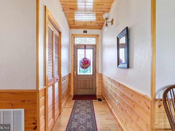 Stunning custom-built home with amazing views on 5.482 acres! Main level has 5 inch solid oak floors and pine ceilings throughout and lots of natural light. Living room features beautiful 9 foot vaulted pine ceilings, a stone chimney and hearth with Jotul AirTight woodstove and wood mantel. Massive kitchen has butcher block countertops, slide out drawers, 5x5 island, built in convection oven, and 36" gas cooktop. Primary suite on main level offers 4x8 walk-in cedar closet, shower with floor to ceiling tile, stackable washer/dryer, and a door to the rear deck. Also on the main level is an additional bedroom, office, and full bath with tub/shower. Composite deck on rear of home and concrete patio make great places to enjoy your morning coffee and take in the amazing views! Downstairs is a spacious family room with vinyl plank floors and separate flue for another woodstove. There is also a third bedroom, a bonus room, and full bathroom with tub/shower combo, and a large unfinished storage room with tankless water heater. Heating system has a variable speed furnace motor, as well as healthy climate features such as Air filters, a UV light, and an Air scrubber. Two car garage has large doors and 24 x72” HD shelving. Outside offers a run-in shed and shipping container which will convey - great place to park a tractor or ATV! (Tractor is for sale). There is extensive landscaping, vegetable gardens, and perennial flower beds with roses, day lilies, and herbs. You will also find a year-round stream at the bottom fence line. Located on a dead end road that is state maintained. This one of a kind home won't last long! Schedule your tour today!
