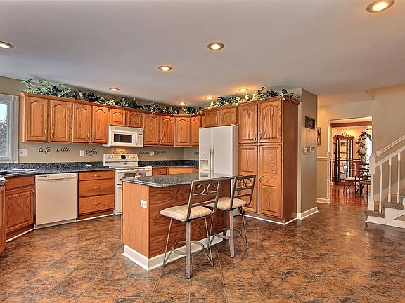 This quality built 1996 2 story offers all the charm and excellence you want in a home, 4131 sq.ft., 4 bdrms, 4bathrms, 2recrms, bonus room over 3 car garage with ample storage. Foyer with hrwd flrs, staircase, oval glass dr w/sidelights, paladium window. Open concept kitchen, bay window eating area, chandalier, granite sink & countertops, ample oak cabinets, staircase to upstairs, impressive custom two sided vent free fireplace open to adjoining recrm with hardwood flrs, wet bar with granite, 2 doors to wood deck. Formal dining rm, hrwd flrs, tray ceiling & chandalier. Living rm, crown molding & chair rail. Main flr laundry. Master suite double tray ceiling, walk-in-closet, private bth. Lower walk out, custom ventless gas fireplace, 2 white columns, entertainment area wired for speakers, bathroom and storage. Private .61 acre lot on cul-de-sac, back yard adjacent to large easement. There is a $2,000 painting allowance, all the furniture in the 3 seasons room stays as well a 2 yr old snow blower. Carpets will also be professionally cleaned after move-out.