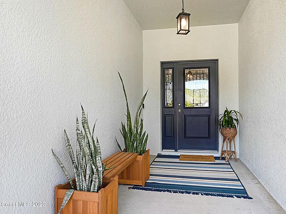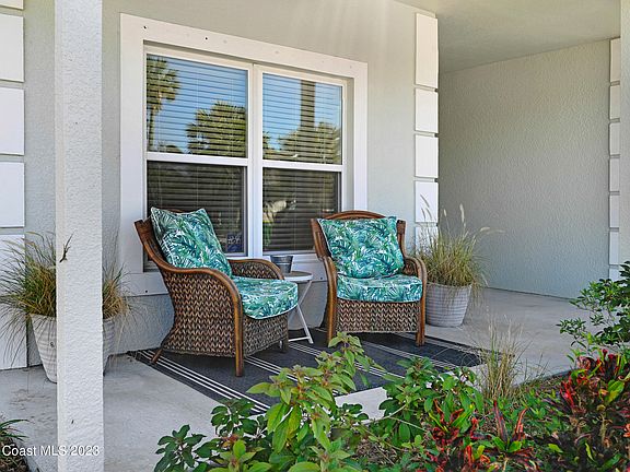 MUST SEE HOME! This well maintained 2014 built home is better than new with the added upgrades. High end stainless steel kitchen appliances, new (2022) exterior paint, extended screened porch, and new carpeting in guest bedrooms. Lawn and sprinkler system maintained by the HOA. Entering through the leaded glass front door with sidelight, you'll find an open floorplan with tile in common areas, granite countertops, breakfast nook, pantry, and a breakfast bar. Inside laundry room including the washer and dryer. Master suite has beautiful wood flooring, double walk-in closets, and double vanities in the master bath, with soaking tub and separate shower. Extended back screened porch has a lovely wooded view, no neighbors behind you! The HVAC system was replaced in 2021. See More... Hurricane panels for storm safety, automatic garage door opener, and added garage shelves for storage. 42" upper kitchen solid wood cabinetry, plus the kitchen is plumbed for gas appliances. Don't miss this move in ready home, super convenient to I95, 524, and a short drive to world famous Cocoa Beach and Kennedy Space Center.