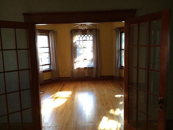 Beautiful 3 br, 1 bath apartment. All hardwoods, built ins, french doors, gorgeous woodwork, Brand new windows throughout. Separate driveway that fits 3 cars. Laundry in unit. Cats ok, and some small dogs. Tenant pays heat, electric. Deposit is first, last, $600 security.