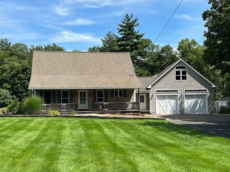 Cape style home in Belchertown perfect for entertaining or raising a family. The home size is deceiving!! Office space on the first floor with plenty of natural lighting from the floor to ceiling windows that look out to the front yard. A kitchen that invites family to gather around the island or have dinner together in the dining room. Impressive 24'x30' man cave w/ wet bar, hardwood floors and kegerator. Sliders that lead to a deck overlooking the backyard that invites you to a beautiful gazebo and 24' lap pool with hot tub. The main bedroom has vaulted ceilings with plenty of natural lighting with a sitting area. Enjoy the balcony with views of the backyard with raised flower beds. The main bathroom has a double vanity with granite countertop, vaulted ceilings, double shower and a jet tub. Large walk-in closet with washer and dryer hood ups. Large second bonus room above the garage with endless possibilities. And for the car collector, a four bay garage. 24x14 shed included.