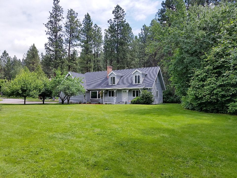 Great home in North Kalispell's Ponderosa Estates. Beautifully landscaped corner lot with mature fruit trees and sprinkler system. Home has nice curb appeal with dormers and covered front porch. Back deck, oak cabinetry, and hardwood floors in kitchen and dining (under carpet). Community park, trails, chip and putt golf and ice rink. Home Owner fees include water, road maintenance, and park upkeep. Fresh paint inside plus on porches and deck. Additional 269 sq ft garage attic storage w/pull down stairs.