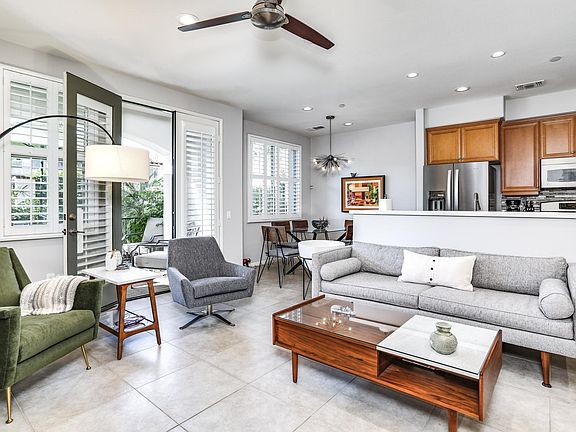 Location, Location, Location! Beautifully updated townhome for seasonal lease right in the heart of Palm Springs just two blocks from downtown in the gated residence of Village Traditions. This 2 story 2.5 bath 1,542 S. F. design has over 50k in upgrades. Upgrades include Stainless steel appliances, custom quartz countertops, plantation shutters, LED lighting, tiled fireplace, newer carpet and brand new paint throughout. There are dual master suites. The main suite has a outside sitting area and deck with fantastic mountain and pool views. Just off the kitchen and leading out through the double french doors is a spacious covered patio for your morning coffee or just relax and enjoy the beautiful views. Village Traditions boasts a community pool, private fitness center and BBQ area. Available December 2021 and January 2022 only. $4,000 for December and $4,500 for January. 2 month minimum. Thank you! Available for seasonal rental December 2021 and January 2022 only. $4,000 for December and $4,500 for January. 2 month minimum. $250 a month utility allotment. No pets please.