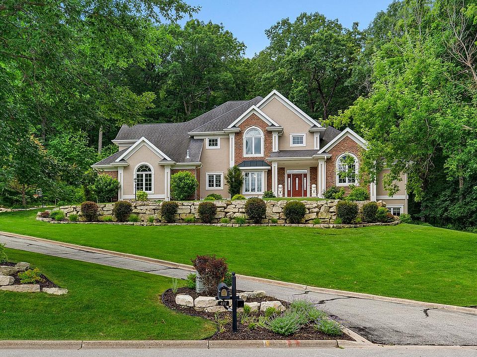 Enjoy a private backyard retreat with stunning views of La Crosse Country Club and Emerald Valley. This timeless 6-bed home features an updated kitchen with Wolf/Sub-Zero appliances, wine fridge, and cozy hearth room. Main-level primary suite includes a spacious bath and large walk-in closet. Upstairs offers 3 generous bedrooms and 2 full baths. The finished lower level has a family room, wet bar, theater, fitness area, rec space, 2 additional bedrooms, and a full bath. Step outside to a large patio with waterfall, sound system, and frequent wildlife. Perfect for relaxing or entertaining.