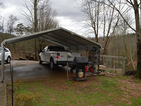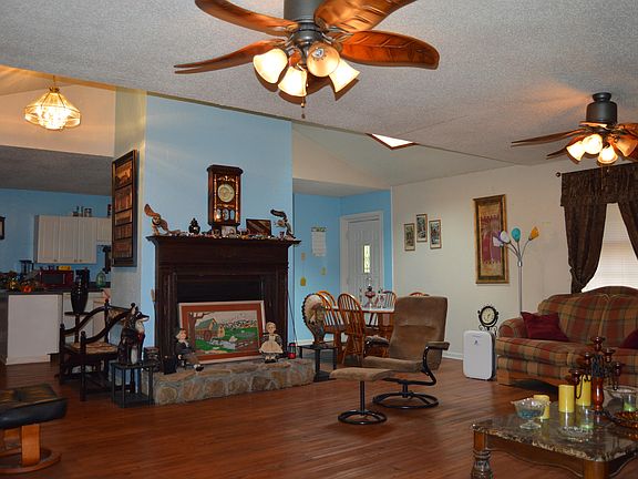 Home with 2 master suites.. 2 bed room 2 bath.Sky lights. Wood burning fireplace.. Nice covered porches. 5.88 acres but is rolling to steep.. Semi secluded.