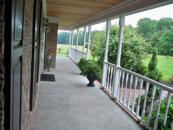 This spectacular luxury home is situated on a 5+ acre lot that offers privacy, wooded area and lovely, panoramic views of preserved green acres. The handsome exterior features a brick/siding facade that is highlighted by a full length wrap around porch (with recessed lighting), entry doors on all 4 sides and professional landscaping, lighting and walks. Constructed by Cianfrocca Builders, known for their workmanship as well as for the unique qualities their homes boast, evidenced here by the fantastic design of the daily living space (Kitchen/family/den/mudroom).
