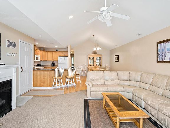 Park your car and walk/bike to everything. This top floor beach block condominium exemplifies life at the beach. Wake up to the morning sun glistening off the ocean while relaxing on the over-sized front deck. Step inside to a generous great room with more than ample space to entertain family or friends anytime of year. You can also enjoy a cozy fire place for winter getaways. This condominium has a fantastic floor plan and cathedral ceilings through out to make the space feel even larger than it is. The bedrooms are set up to maximize rental potential as this home is currently being used as an investment property. This is a well run association and a great location for personal or continued rental use.