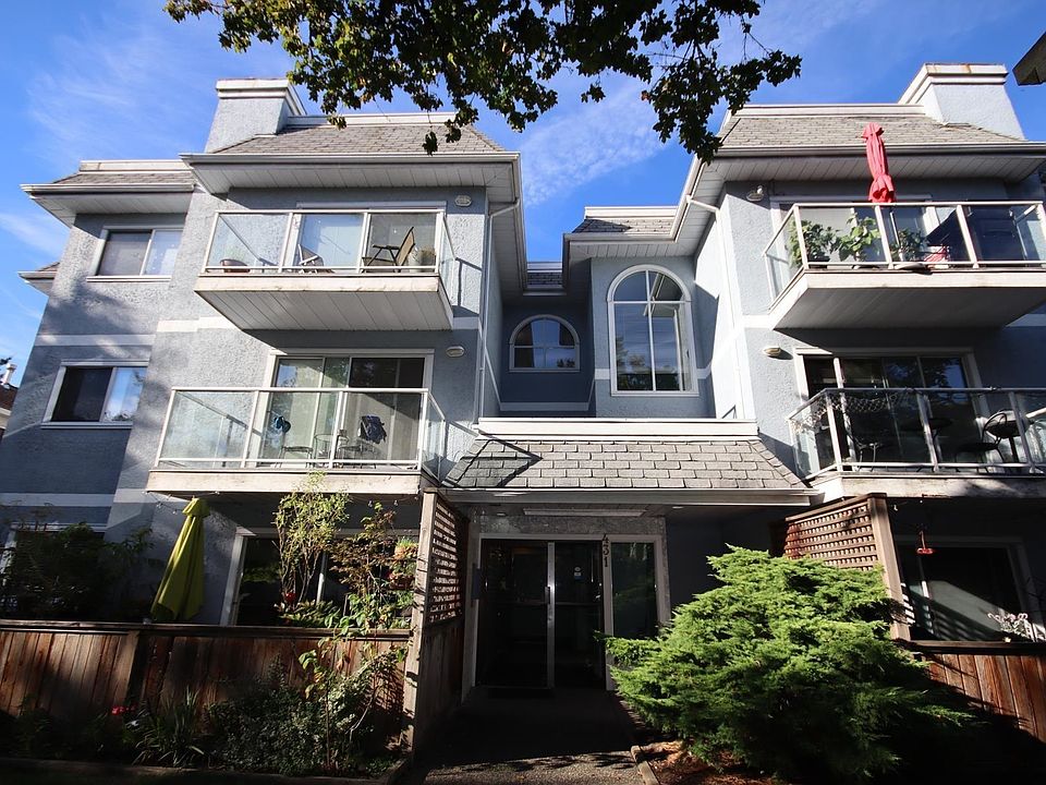Location! A two bedroom condo just Main street located right beside Macdonald Park with tennis courts and playground. With laminate floors, stainless steel appliances, cozy gas fireplace and sunny south-facing patio. This charming home presents outstanding value in a great neighbourhood. Spacious floorpan, large living and dining area, two good sized bedrooms, walk-in master closet, large storage room, in-suite laundry and secure parking. Extremely pro-active and well run building. Pets welcome. Don't miss out on this opportunity.