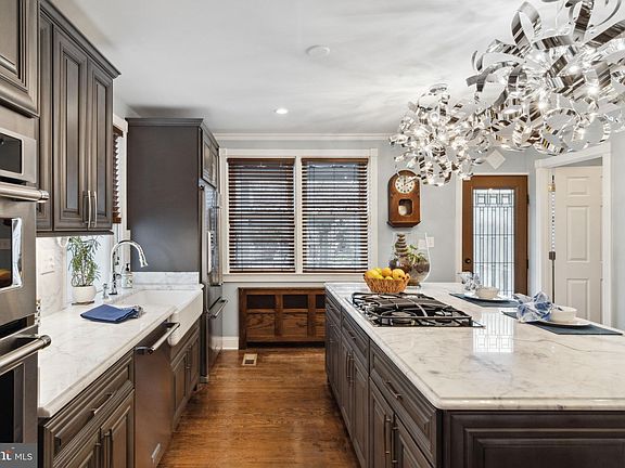 Impeccably Maintained rowhome that was Fully Updated in '15 (inclusive of electrical, plumbing, and structural) w/ thoughtful and high-end finishes. With a total of 3BR 3.5BA, this home has a Kitchen with marble countertops, Kitchenaid Appliances, oversized island w/ seating, farmhouse sink, under cabinet lighting, and flush mount cabinetry. The living/dining area is joined by a gas fireplace. The primary bedroom suite has a sitting area w/ 2-way fireplace, handmade barn style door concealing a walk-in closet w/ built-ins, and a private deck. The luxurious en-suite bathroom has Kohler fixtures, marble finishes, dual vanity, oversized shower and separate tub, VELUX skylights that open/close w/ operable shades and a rain sensor, heated floors, and the other side of the 2-way fireplace. The entire Primary BR/BA suite had the ceilings raised as part of the extensive renovations. The second bedroom is Queen Sized w/ built-in wardrobes and a heavy duty pull down ladder leading to an attic w/ floorboards for additional storage.  The basement is setup for an au pair/in-law suite with the 3rd BR, 3rd full bathroom w/ heated floors, a wet bar/kitchenette, additional storage space, walk-up entrance to the rear yard, and is kept dry by a waterproof system w/ battery backup.  Rear yard is fully fenced w/ 8' Privacy Fence enclosing a luscious garden oasis w/ water feature, new concrete and iron works, brick patio, and walking paths leading to an Oversized 1.5 car garage w/ Electric Car Charger, insulated security door, new roof/gutters '17, and a 1-2 car concrete parking pad off the alley.  Additional features include Crown Molding, hardwood floors throughout, heated upper and lower bathroom floors, a walk-in closet on the main level, Updated windows w/ Inconspicuous Security Screens (can only be cut w/ diamond tipped saw), Upgraded Exterior doors, Security Storm Doors, Water Heater '16, Boiler '10, Commercial Heat Pump for upper level zone. Structural improvements have been made to the house during renovation including upgraded beams. This home is completely walkable to all Belvedere Square has to offer! Conveyances: Wine cooler in basement, smart thermostats, all mounts and mounted TVs except living room.