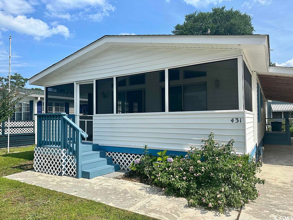 This home is located in the gated golf cart communtiy of Oceanside Village just east of 17. Featuring 2 bedrooms, 2 baths, an open concept, new vinyl flooring thorughout, freshly painted, new master bath vanity, and much more. You are sure to enjoy all of the natural light, and double sliders off the living/dinning room to the oversized screened porch. Oceanside offers an array of amentites foreveryone from tennis, bocce ball, pickle ball, indoor & outdoor pool, kids splash pad, private beach parking and so much more.