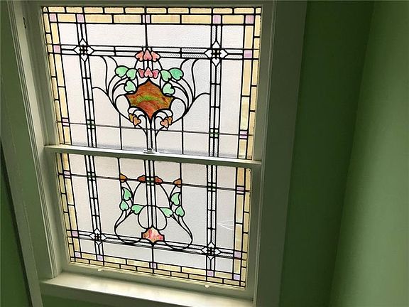 Classic charm accents this solidly built brick home. 5 bedrooms and 2 baths provide all the space you'll need. You're invited into this home by a spacious front porch, leaded glass front door, and 11x12 foyer. The home has newer windows, glass block windows in the basement and energy efficient furnace, and unbelievable storage. Stained glass windows, window seat in the dining room with added storage, and wide woodwork add to the vintage charm of this impressive home. Outside work and storage area is provided in the super size 2 car garage which could easily be 3, possibly 4 car!! Currently half is used as a workshop area, plumbed and heated.